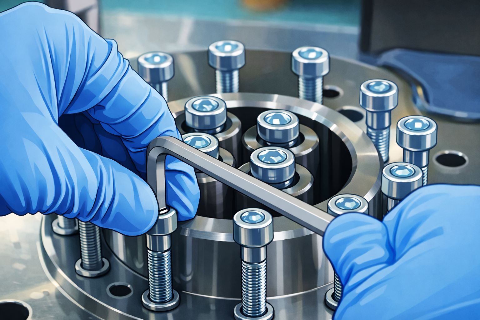 製缶・板金や機械加工を経た部品を組み合わせ、産業用機械などの製品として完成させる工程です。図面を確認しながら部品を取り付け、位置や向きを調整し、全体が正しく動く状態に仕上げます。部品同士が無理なく組み合わさるよう細かい確認を行い、必要によっては調整を行うことも。製品を完成形にするための重要な工程を担っています。