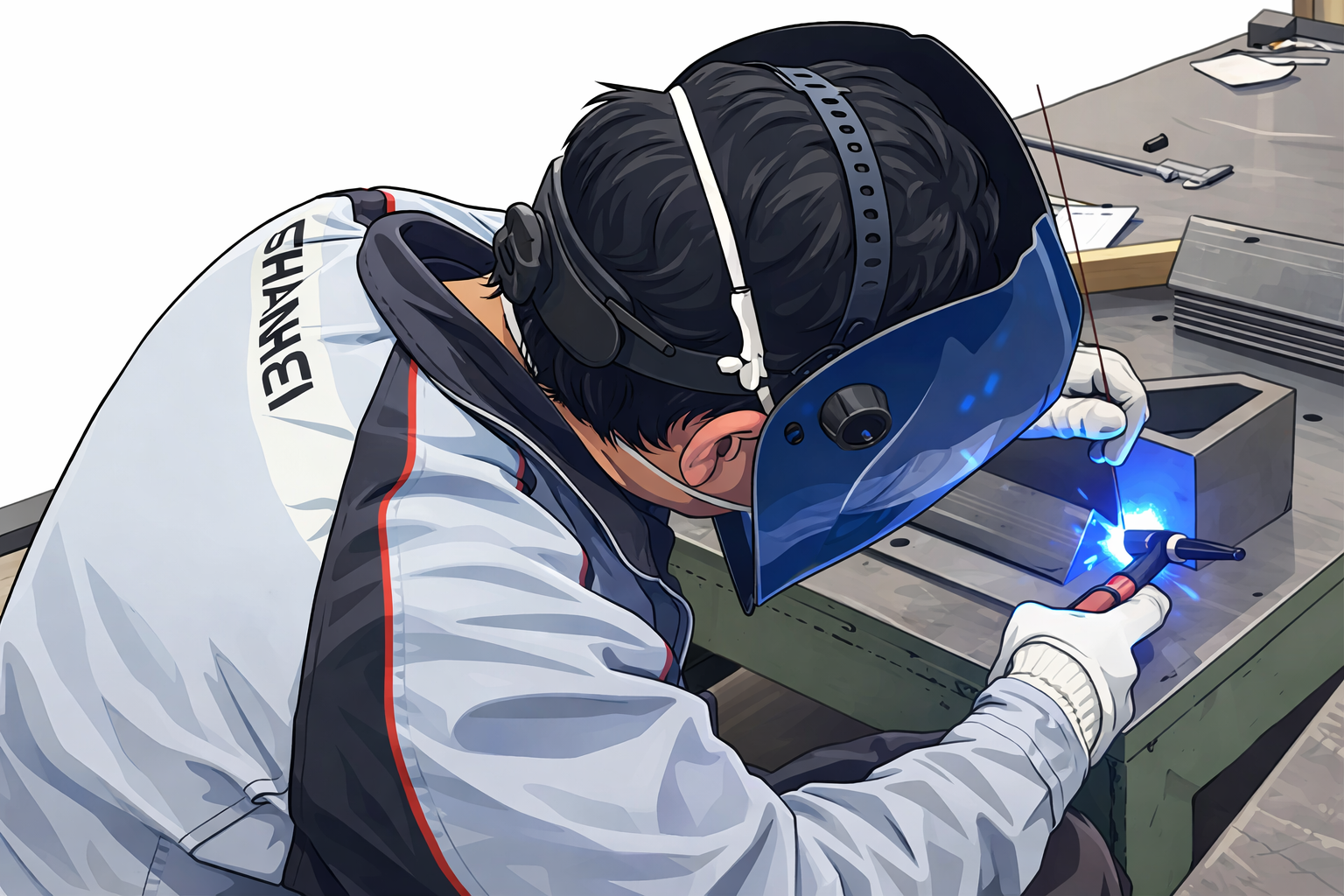 産業用機械などの骨組みや外側を覆うカバーを製作。鉄・ステンレス・アルミといった金属の板を切断し、曲げて形を整えたうえで、部品同士をつなぎ合わせて一つの形に仕上げます。機械の土台となる処理として、強度や寸法の正確さを大切にしながら図面に沿って丁寧に加工することで、最終的な機械の品質を支えています。